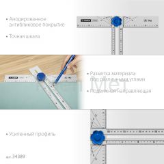 - ЗУБР Т-угольник алюминиевый с подвижной направляющей, Профессионал (34389)